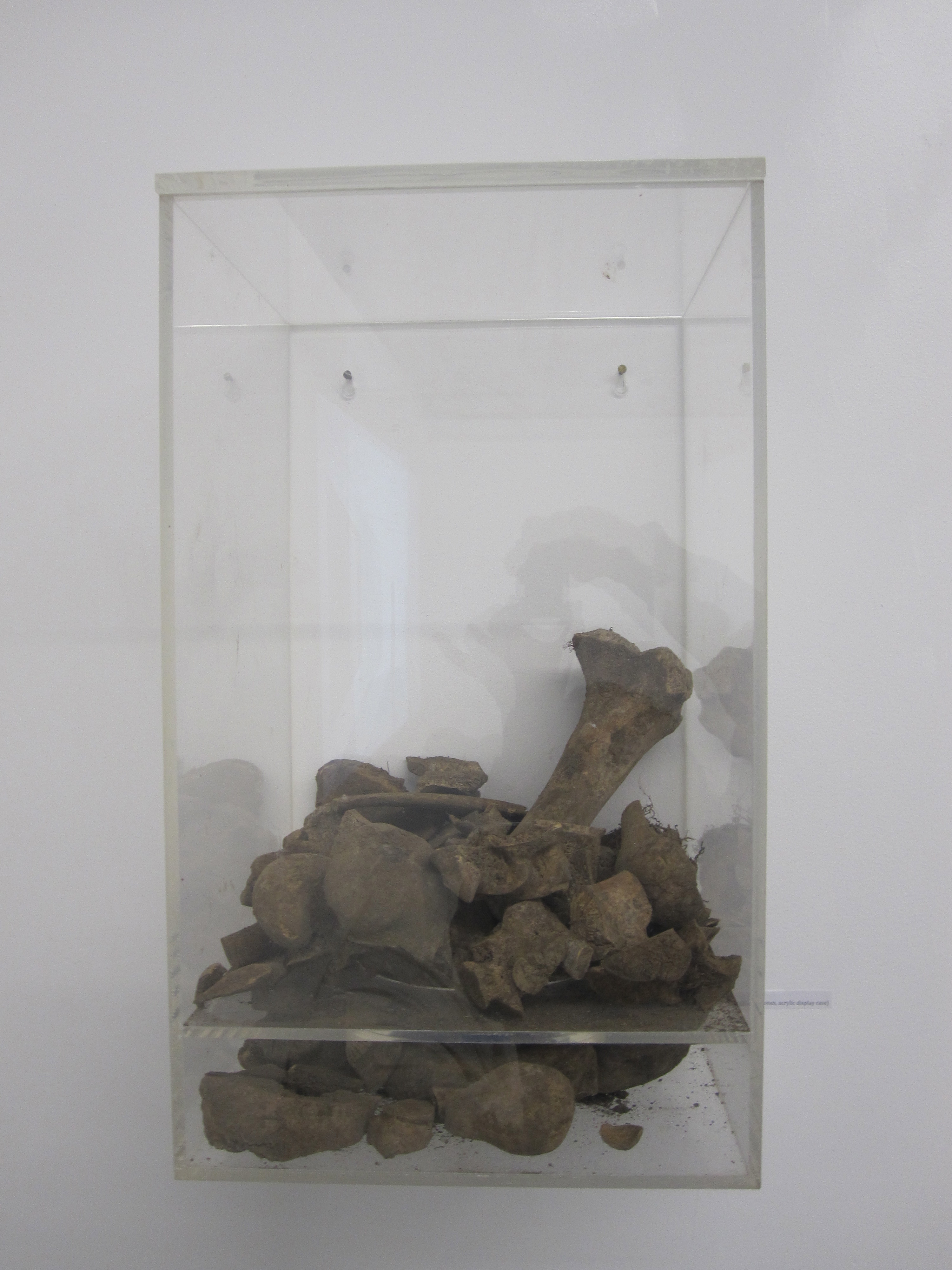 XX (Unidentified bones, acrylic display case / huesos no identificados, vitrina de acrílico)